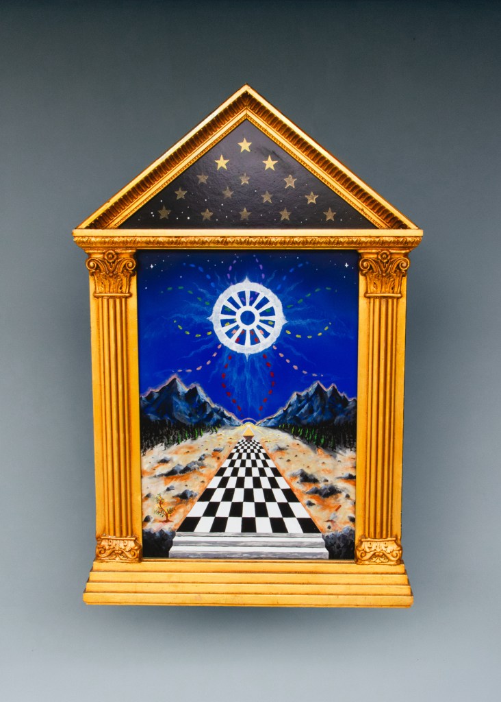 For BEiNG!, art is more than just paint on canvas; it’s a journey of self-discovery and expression. Delving into the depths of symbolism, he seeks to create new symbols while seamlessly blending ancient ones. In his own words, “I want to use symbolism as a way to convey universal truths, using ancient and established symbols alongside new ones that I’ve created – and have them function seamlessly as one.” This philosophy is reflected in his work, where layers of symbolism intertwine to form a narrative unique to his being.