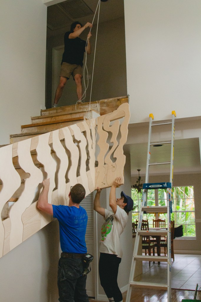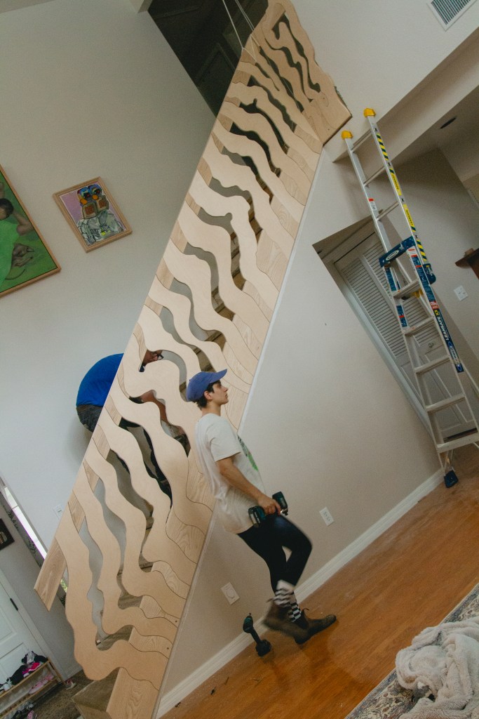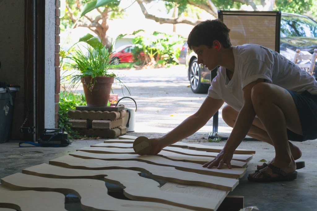 Her process is meticulous and labor-intensive. Using a bandsaw allowed her to achieve precise cuts and curves, bringing her vision to life. Each step was shaped with care, ensuring the final product was both sturdy and visually stunning.