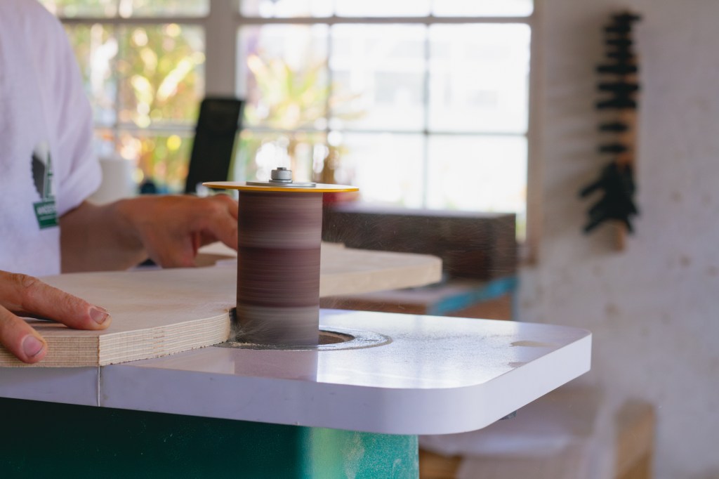 Paméla’s approach to woodworking is almost meditative. “Even working in a lumber mill, there’s a sense of having to educate people about what lumber is and isn’t,” she says. “A lot of people see it as dead weight, a term used for construction material. They’re very disconnected from how a tree is grown and the value of wood.”